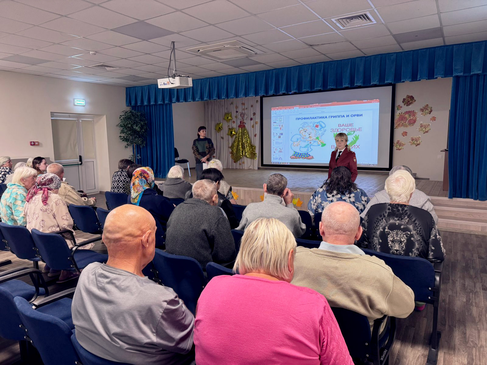 Главным специалистом территориального отдела Управления Роспотребнадзора по Воронежской области в Семилукском, Нижнедевицком, Репьевском, Хохольском районах в рамках реализации коммуникационной стратегии «Санпросвет» 31.10.2025г., в БУ ВО "Краснолипьевский центр реабилитации и социализации», проведен лекторий с гражданами пожилого возраста, на тему: "Профилактика гриппа и ОРВИ, вакцинация для людей старше 60 лет", в ходе которого рассказано об осложнениях, возникающих после заболевания гриппом и ОРВИ, о необходимости укрепления иммунитета, об основных мерах профилактики и защиты от респираторных вирусных инфекций в холодное время года, о своевременном обращении за медицинской помощью при первых признаках болезни, а также о важности своевременной вакцинации против гриппа. Также специалист рассказал присутствующим об эпидемиологической ситуации в Репьевском районе.